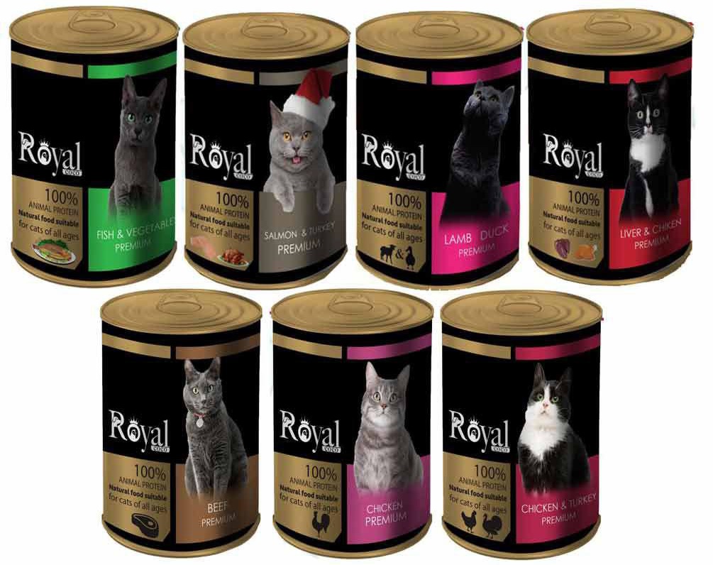 طمع | ماهی و سبزیجات ، سالمون و بوقلمون ، بره و اردک ، مرغ و جگر ، گوشت گاو ، مرغ ، مرغ و بوقلمون |